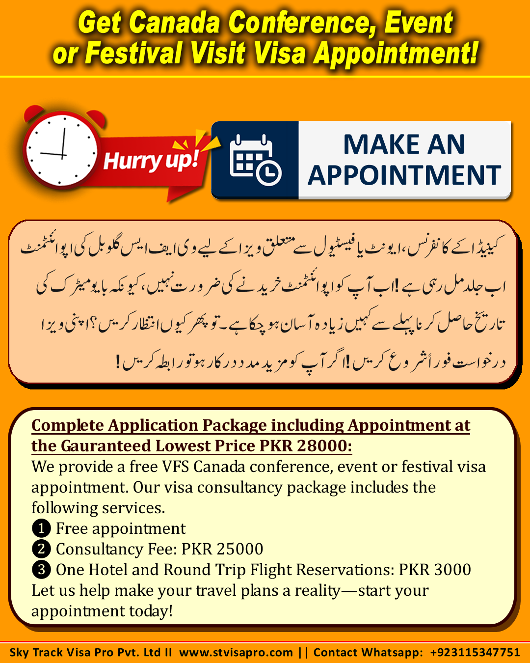 We provide a free VFS Canada conference, event or festival visa appointment. Our visa consultancy package includes the following services.